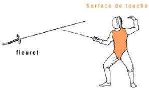 Il faut toucher son adversaire avec la pointe de la lame: c'est une arme d'estoc. La zone valable exclut les membres et la tête, c'est à dire que pour qu'une touche soit valable et rapporte un point, elle doit être portée sur la zone du tronc (signalé par la cuirasse métallique). Les assauts au fleuret sont soumis à des règles de priorité. La priorité est donnée à l'attaquant.
